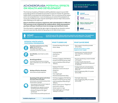 A summary of expert guidelines that outline how to monitor for complications associated with achondroplasia and help discuss them with your care team.