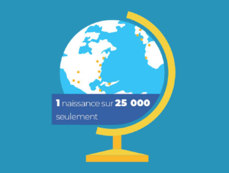 L’achondroplasie touche 1 enfant sur 25 000 naissances ; environ 250 000 personnes en sont atteintes dans le monde.1,2