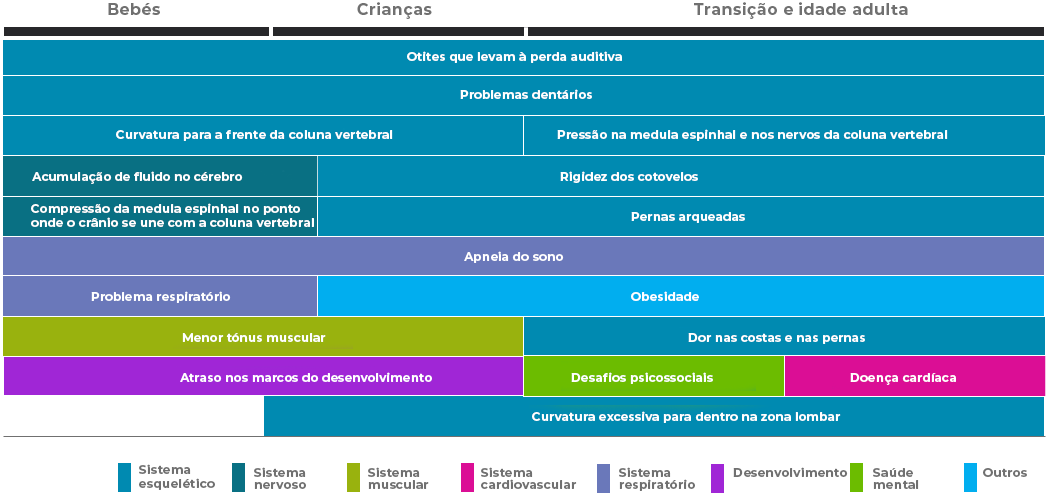 Na escola, na universidade, no trabalho e noutros momentos da vida, as pessoas com acondroplasia podem ter vidas ativas e saudáveis. Ao mesmo tempo, devido à forma como os seus ossos crescem, podem ocorrer complicações físicas que vão evoluindo com o tempo. Contudo, se uma pessoa sabe o que esperar, pode estar preparada para uma gestão vitalícia da acondroplasia com a ajuda da sua equipa de cuidados de saúde.